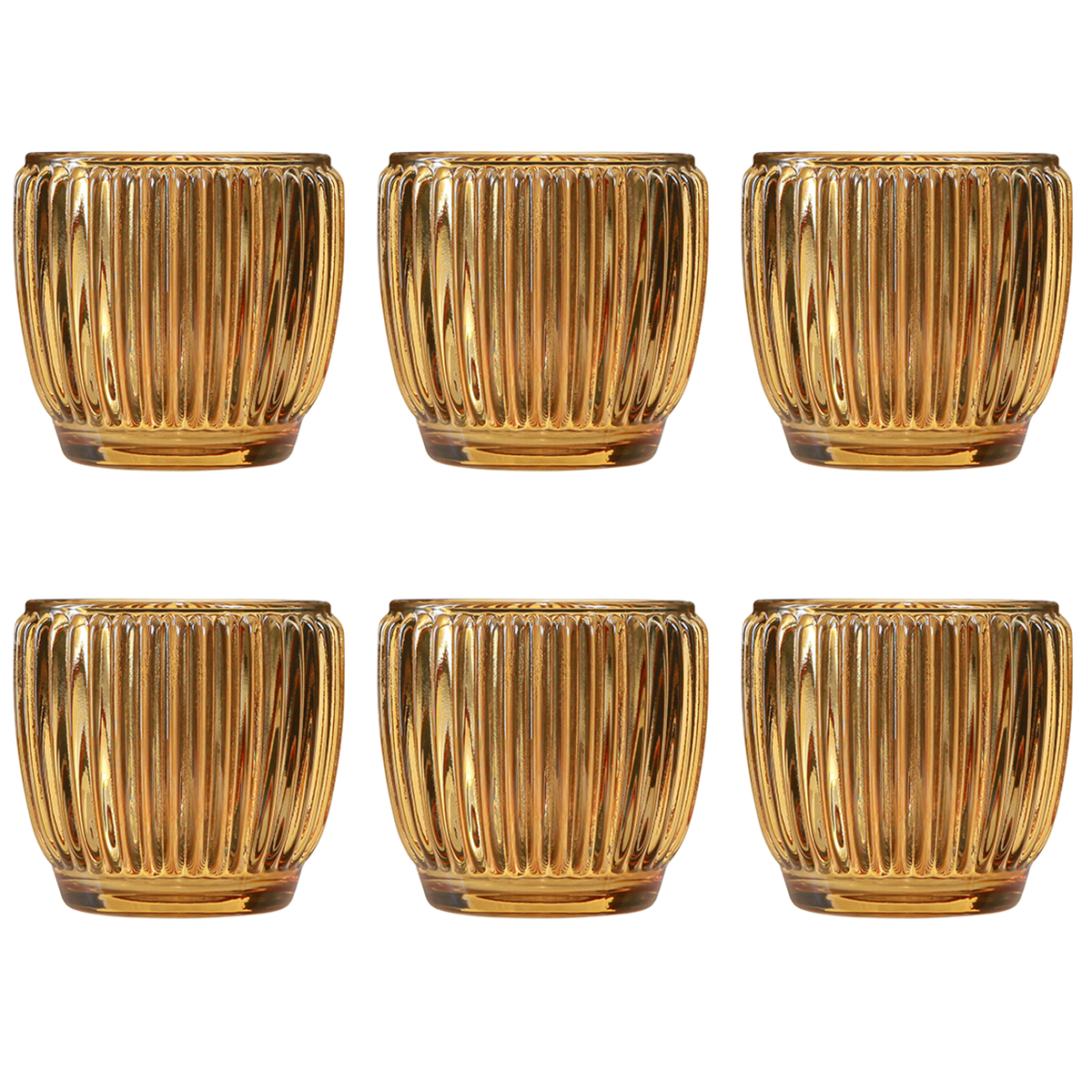 Windlicht Orange Kerzenhalter Glas Retro Ø7cm H7cm 6 St