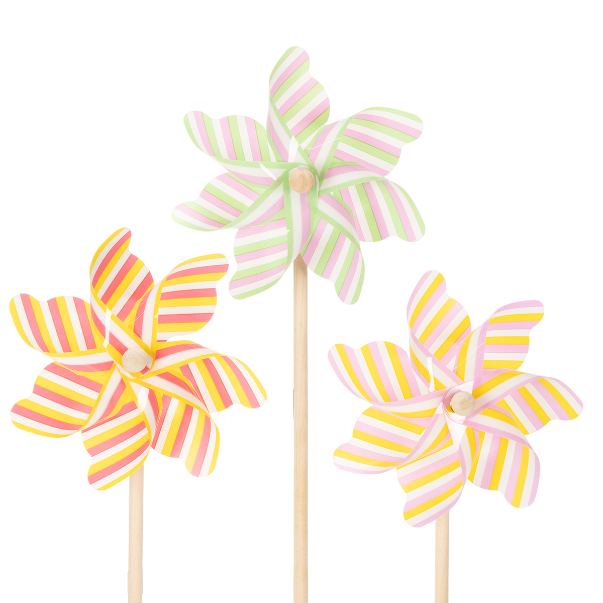 - Set bestehend aus 3 gestreiften Windrädern in zarten Pastellfarben
