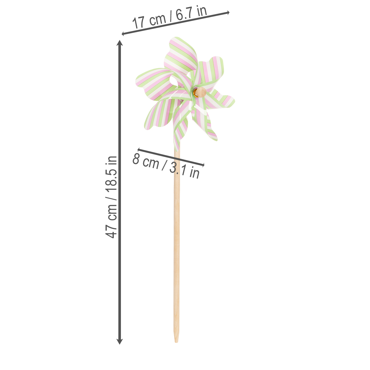 Produktname: Windrad Gartenstecker Attraktive Dekoration für Terrasse Garten und Balkon 47cm 3St