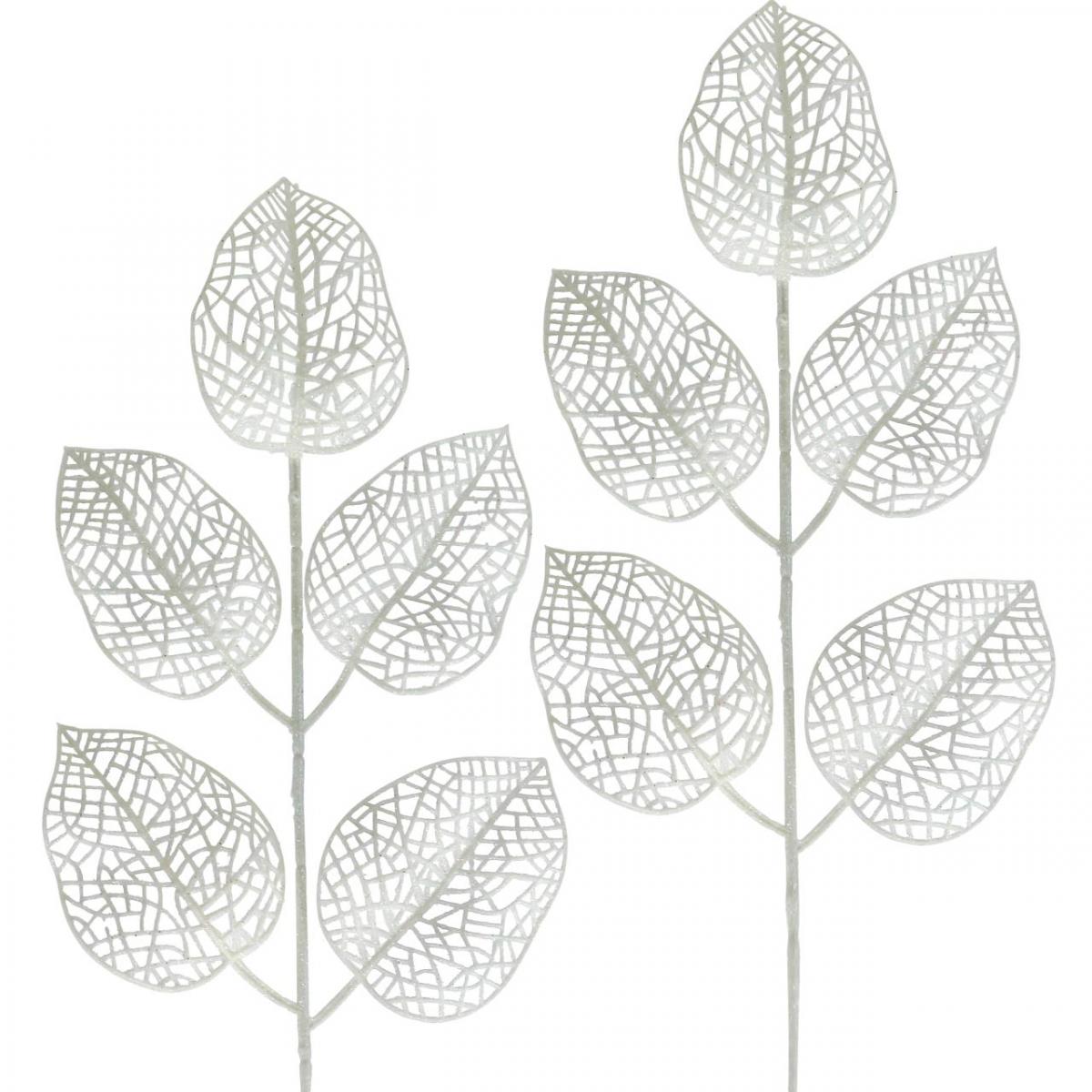 Winterdeko, Deko Blätter, Kunstzweig Weiß Glitter L36cm 10St
