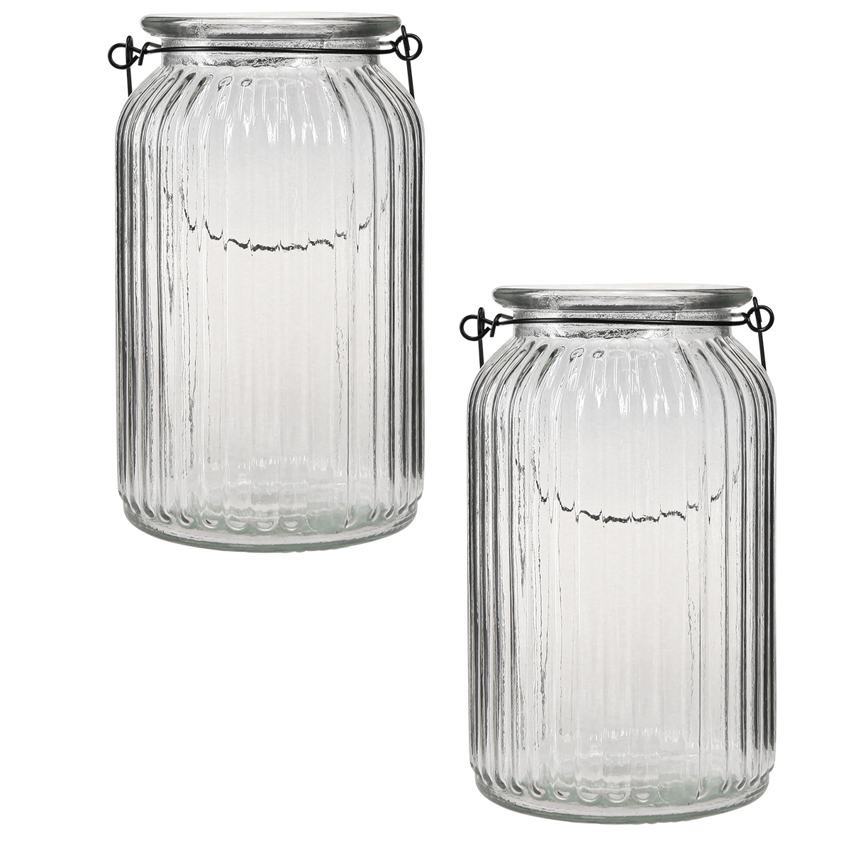 Laterne Glas Windlicht zum Hängen Henkel H18cm 2St