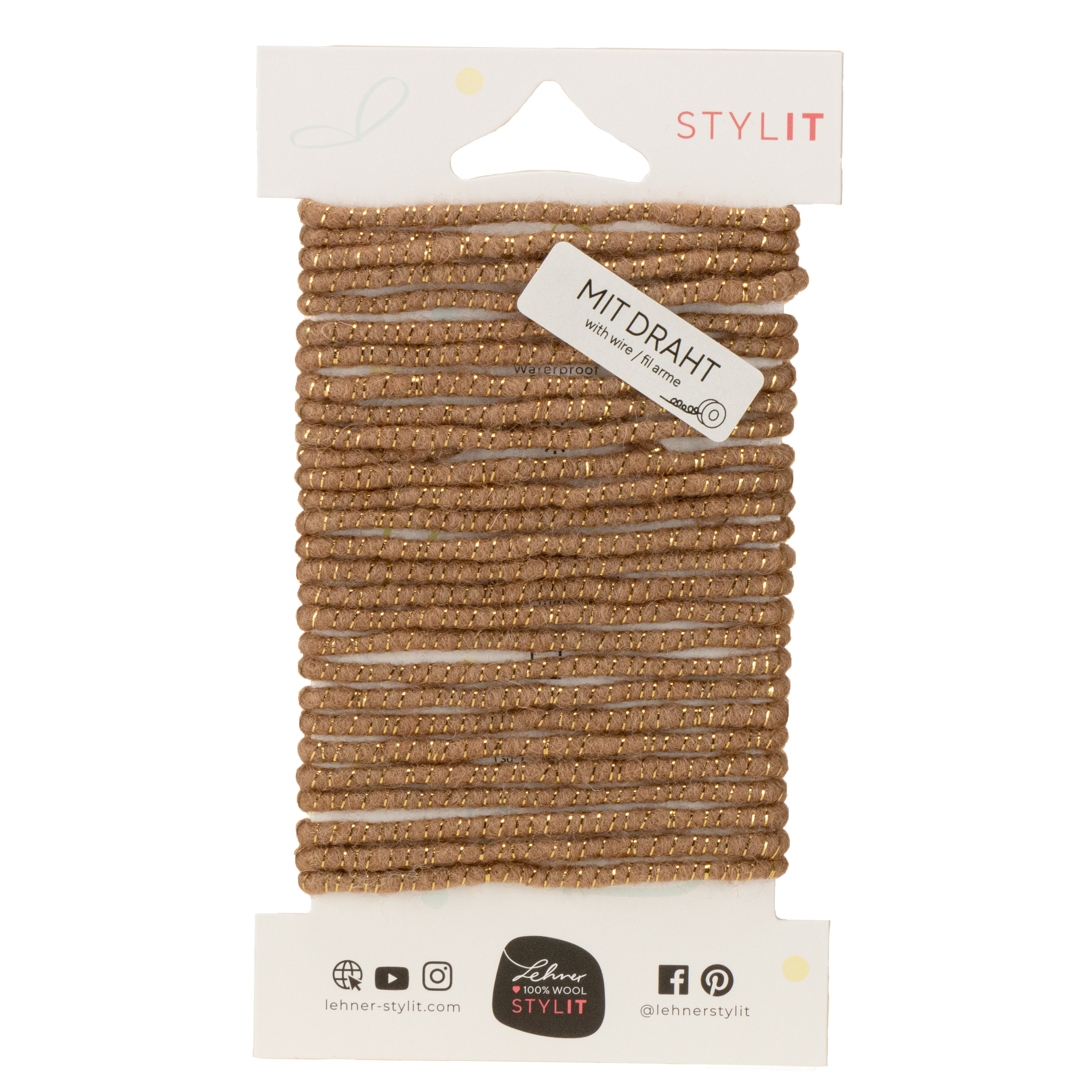 Produktname: Wollkordel Braun Goldfaden 5m x 5mm mit Draht für Deko und Basteln