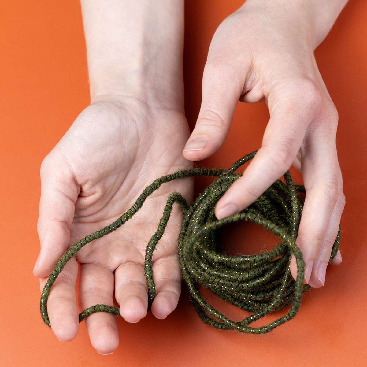 Wollkordel Grün Goldfaden 5m x 5mm mit Draht – die perfekte Deko-Bastelschnur