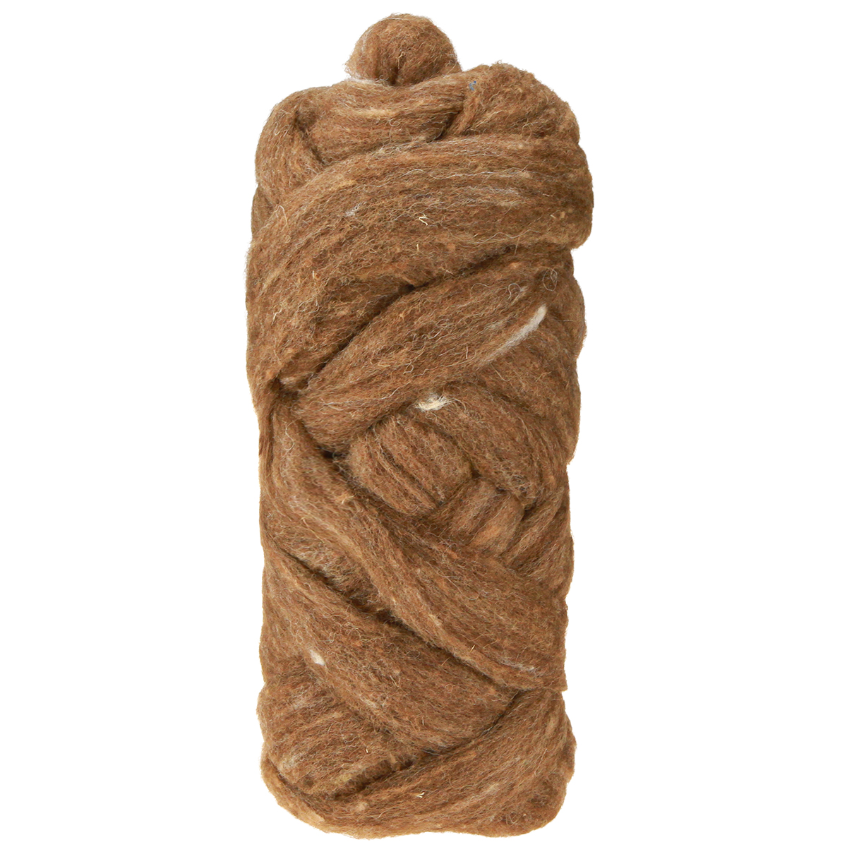 Die Wolllunte in Braun wird in einem Beutel geliefert und ist circa 10 Meter lang. Der Durchmesser der Lunte beträgt ungefähr 4 bis 5 Zentimeter.